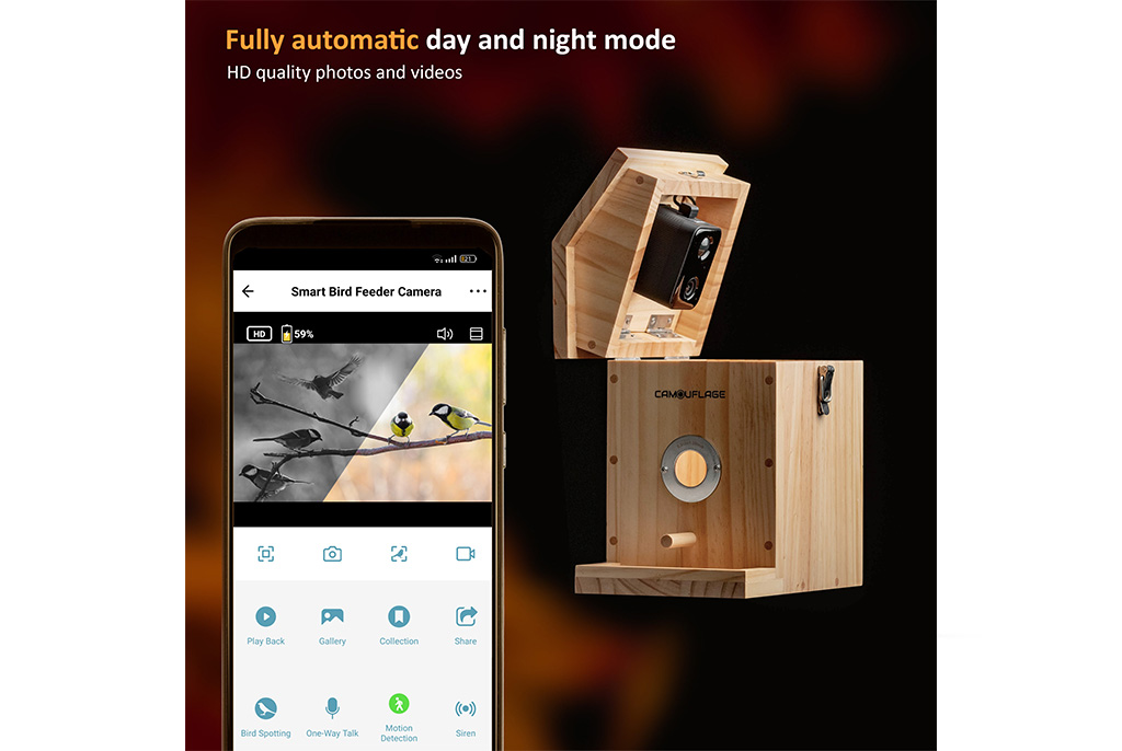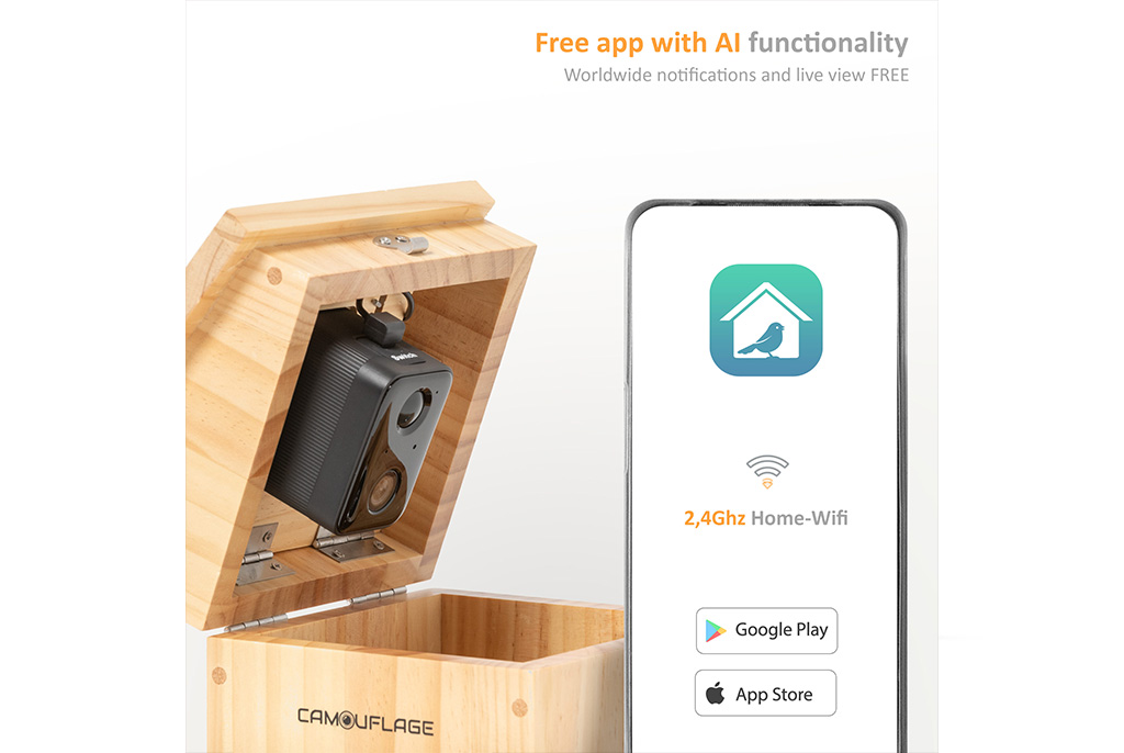 The Camouflage EZ-NestEye is more than a nest box — it’s a gentle way to observe the private world of nesting birds. Featuring an AI-powered camera, integrated solar panels, and a free worldwide app, it allows you to watch, record, and identify birds around the clock without causing any disturbance.AI powered bird recognition up to 11000 species identified in real time