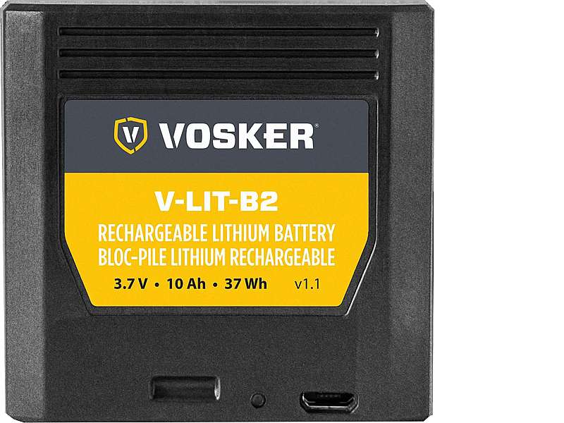 The Vosker V-LIT-B2 is a rechargeable lithium battery pack that is compatible with the Vosker V150 Solar Mobile Wildlife Camera. It has a 10,000mAh capacity and can be recharged using a micro USB port.
